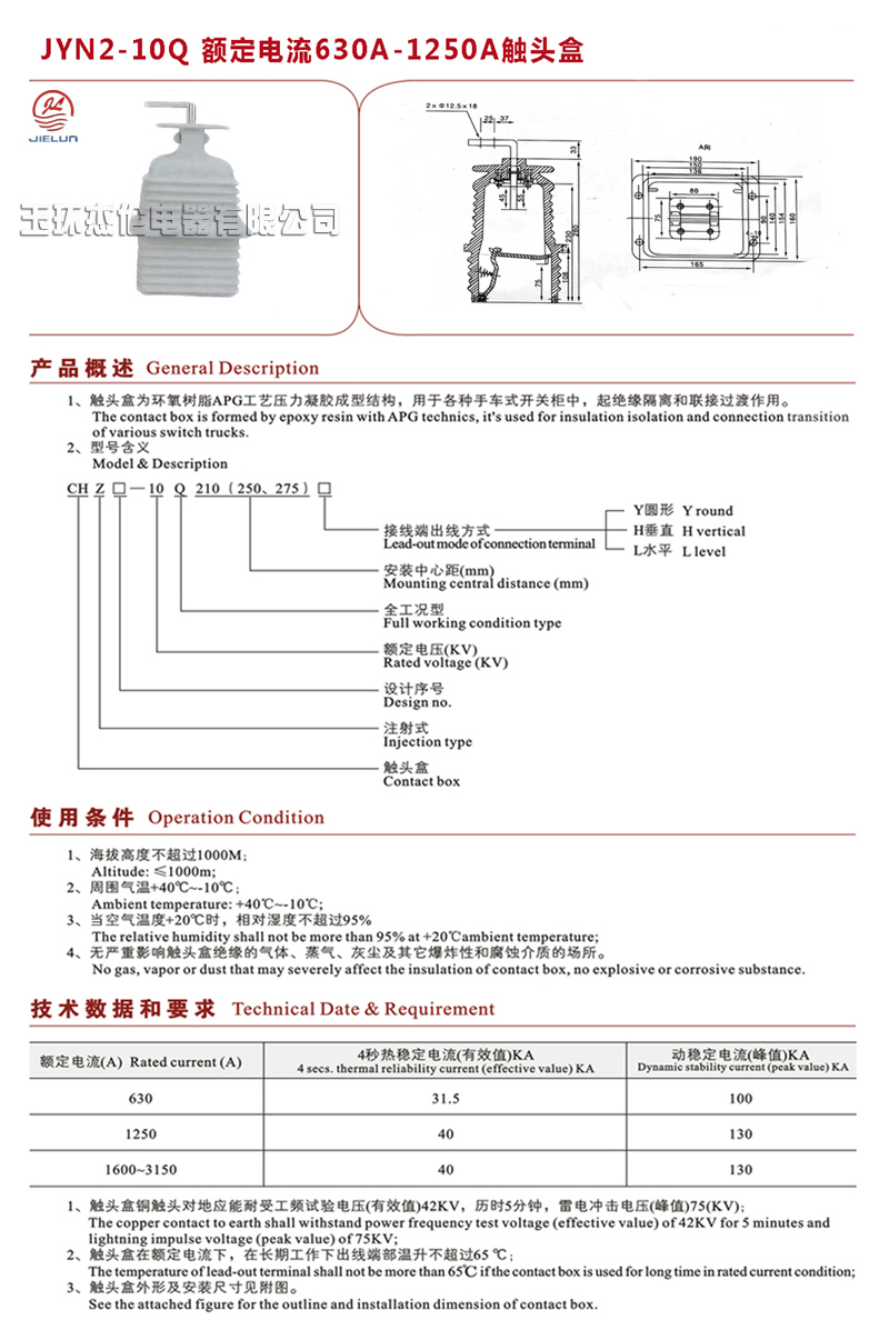 JYN2-10Q 额定电流630A-1250A触头盒