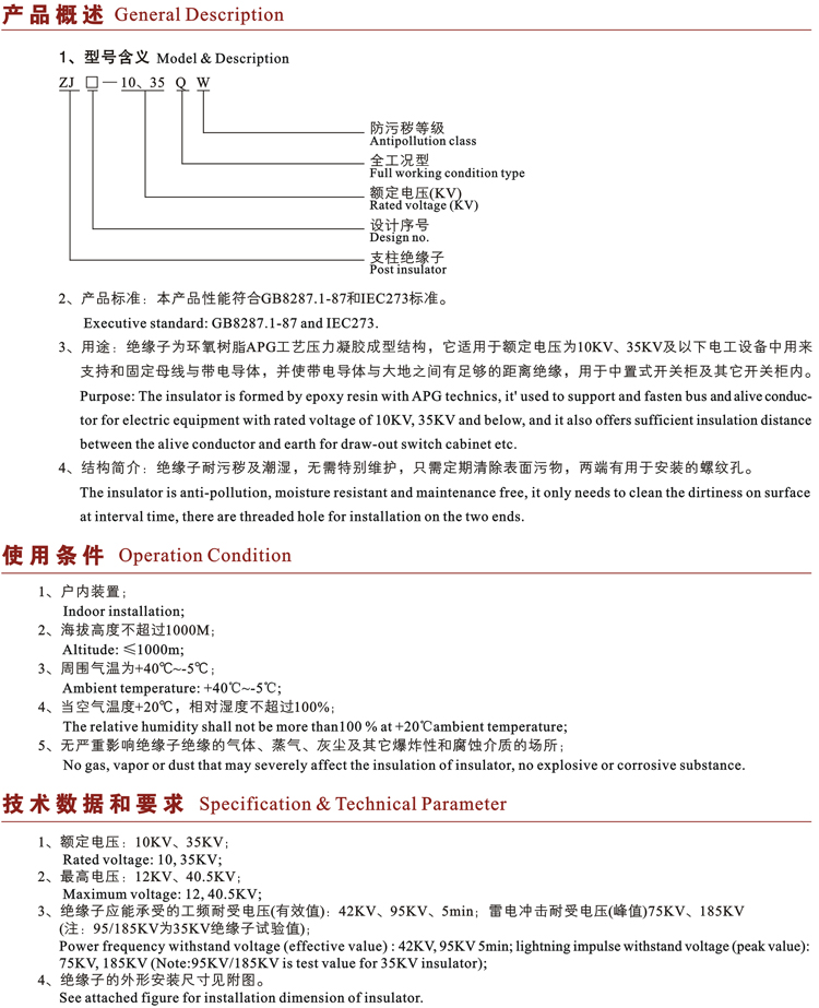 ZJ-10Q/Ф85×100支柱绝缘子