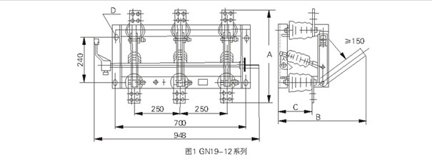 GN19-12(C)系列户内交流高压隔离开关适用于交流50Hz,额定电压12kV及以下电力系统中,配用型人力操作机构,作为在有电压而无负载情况下,分合电器之用,亦有派生产吕防污型、高原型和可加装带电显示装置等。