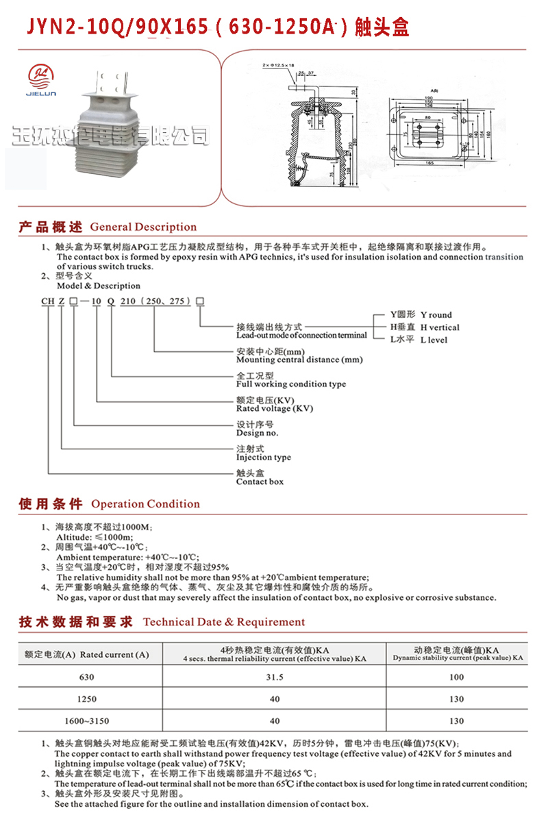 JYN2-10Q/90×165(630-1250A)触头盒